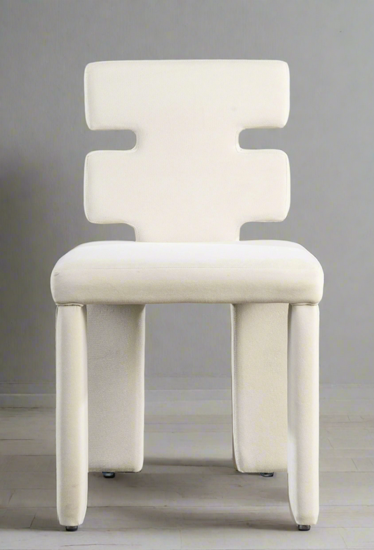 Talia White Boucle Dining Chair with Wood Cone Legs