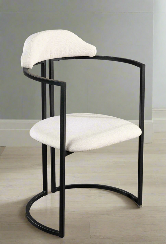 Bennett Boucle White Modern Dining Chair with Black Metal Base – Contemporary Side Chair