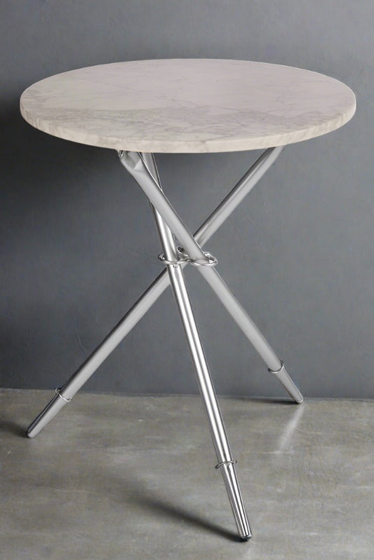 Emmy Marble Base Round Side Table, Drink Table-White and Gold